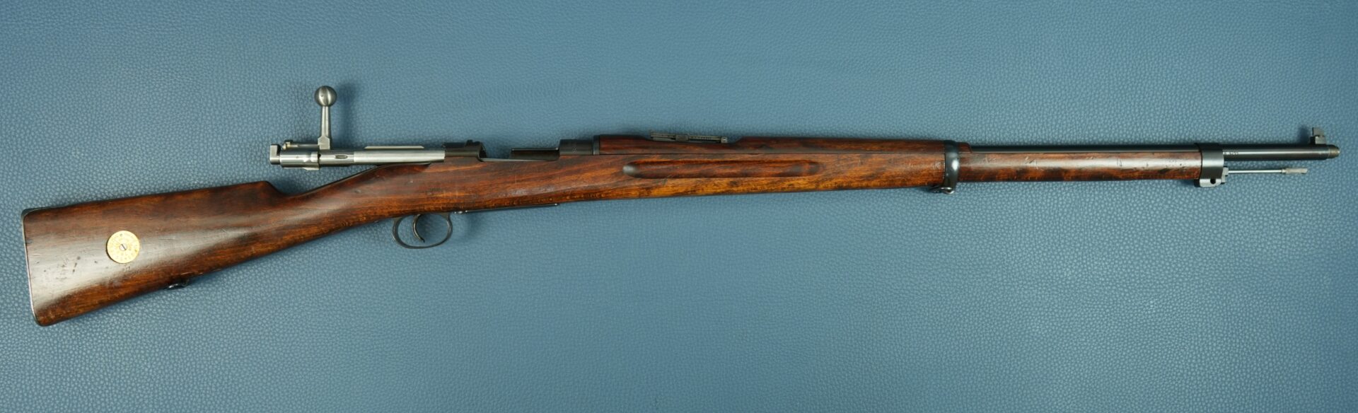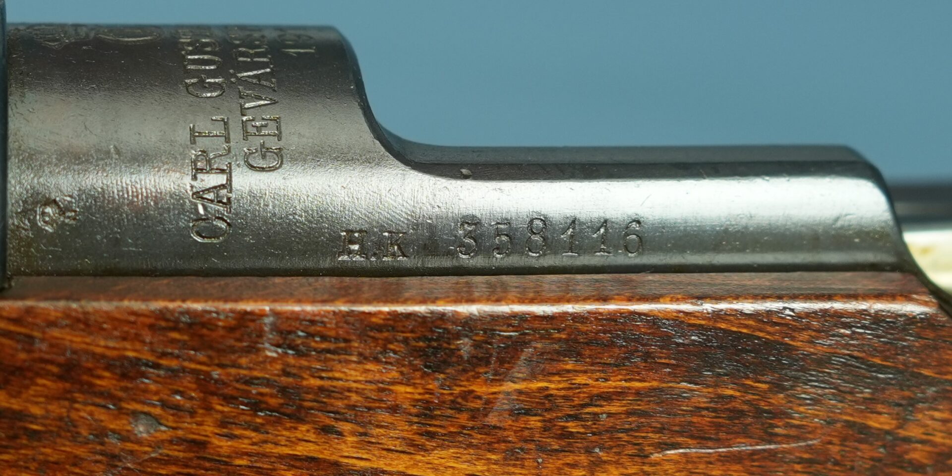 | Bemerkungen: | Nummerngleich Baujahr 1915 Gesamtläge: ca. 125,5 cm Lauflänge: ca. 74 cm Länge bis Abzug: ca. 35 cm |