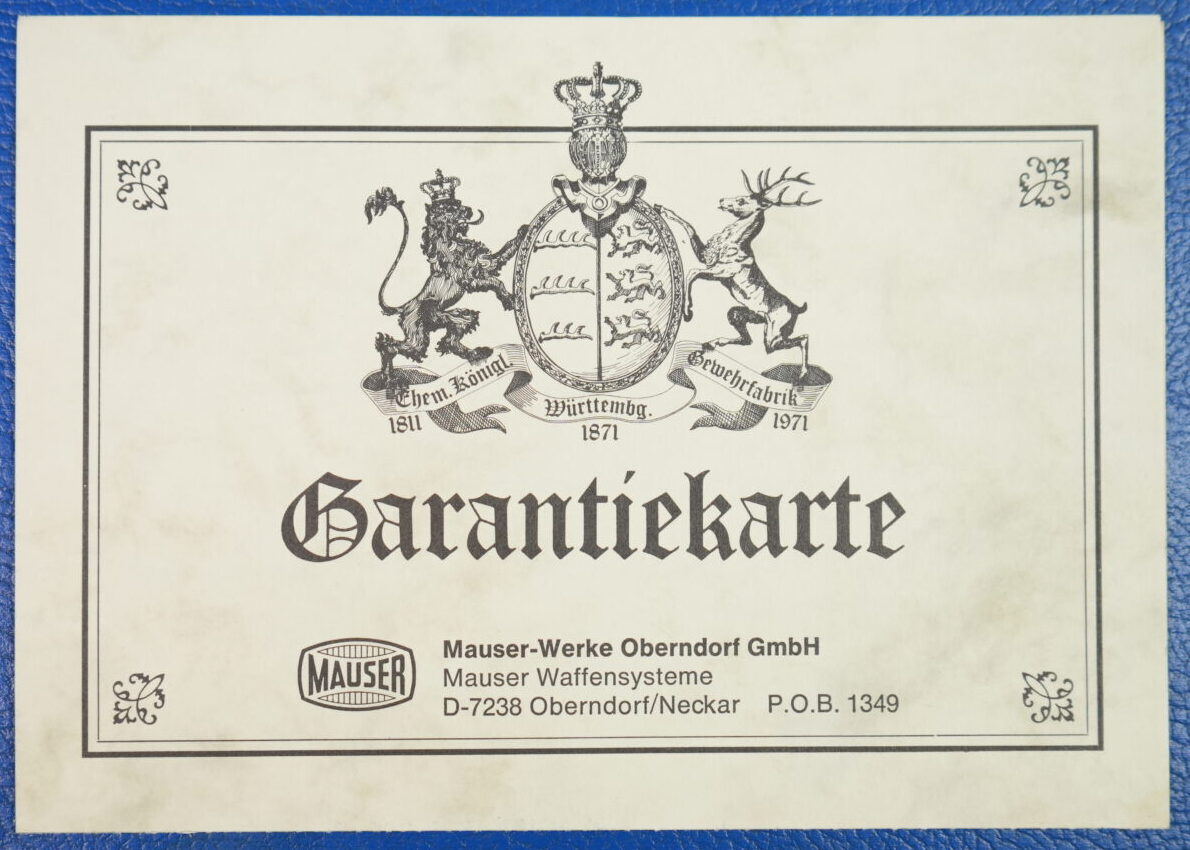 Dokumente liegen die Anleitung, das Zertifikat, die Garantiekarte und die Original-Anschuss-Scheibe bei.